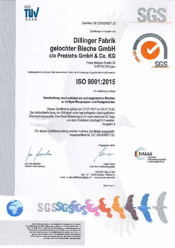Die Preziehs GmbH & Co. KG, ist eine 100% ige Tochter der Dillinger Fabrik gelochter Bleche GmbH, und seit Jahren einer der führenden Hersteller von Bauteilen, Schallschutz und Trennwänden, Behältern und Gehäusen aus Blech und Lochblech. Mit einem auf diese Produktgruppen ausgerichteten, hochmodernen Maschinenpark sind wir in der Lage, nahezu alle Kundenanforderungen vom Prototypenbau bis hin zu Großserien problemlos zu erfüllen. Ob Lasern, Stanzen, Nibbeln, Prägen, Umformen, Biegen, Kanten, Schweißen, oder Oberflächenbehandelung, wir liefern Ihnen alles aus einer Hand. So anspruchsvoll wie Ihre Aufgabe, so professionell ist unsere Lösung. Hochqualifizierte Fachleute, motivierte Mitarbeiter sowie eine auf die Kundenbedürfnisse abgestimmte flexible Auftragsabwicklung werden Sie überzeugen.